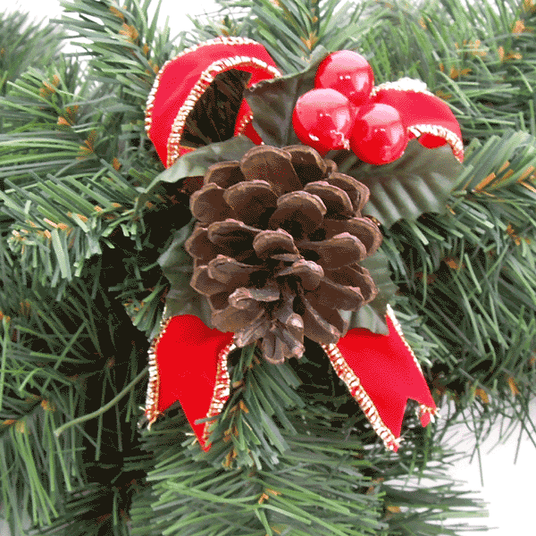 【商品サイズ】 直径:約13cm 厚み7cm 松笠:約5〜6cm ワイヤー:約7cm 材質:ポリエステル・PVC・自然素材 クリスマスリースやクリスマスツリーの飾りに・・・ 裏側にしっかりしたワイヤーが出ていますので 作業がし易い!壁面などを飾るのにも向いています。