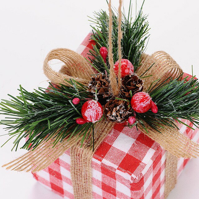 ギンガムレッドボックス デコレーション オーナメント 置物 クリスマスオーナメント [T-XO006305] 代引決済不可